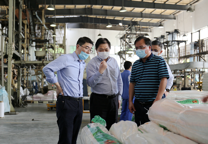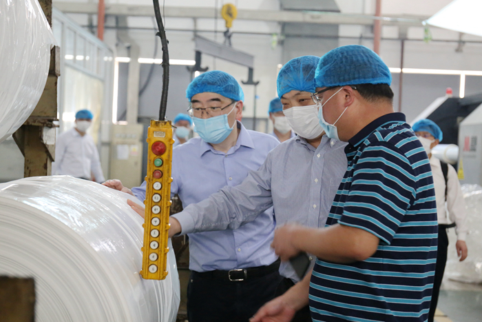 來訪期間,中石化領導一行在韓新偉等陪同下考察了新光公司,參觀了新光公司農膜生產車間、倉庫,詳細詢問農膜產品的生產工藝流程、農膜生產、原料供應、庫存儲備情況,零距離了解中石化產品在生產一線的使用情況。