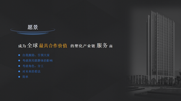 隨著品種制改革序幕的拉開,明日控股啟動了“追求卓越”的新征程。卓越之路,文化先行,明日控股董事長韓新偉在會議現(xiàn)場回顧了明日控股各個發(fā)展階段的企業(yè)文化之旅,并在深入解讀了阿里巴巴、通用電氣、迪士尼等企業(yè)文化的基礎(chǔ)上,隆重發(fā)布了明日控股2020版企業(yè)文化及其內(nèi)涵,全面升級明日控股企業(yè)愿景、使命、價值觀。新時期,明日控股的企業(yè)愿景是“成為全球最具合作價值的塑化產(chǎn)業(yè)鏈服務(wù)商”,企業(yè)使命是“在傳遞價值中創(chuàng)造價值”,明確了六脈神劍價值觀,即“為客戶創(chuàng)造價值,為員工創(chuàng)造平臺”、“追求卓越”、“簡單透明”、“持續(xù)創(chuàng)新”、“誠信共贏”、“開放包容”。韓新偉指出,追求卓越,文化先行,企業(yè)既要通過發(fā)展戰(zhàn)略明確發(fā)展方向,也需要文化凝聚共識,為追求企業(yè)的卓越發(fā)展奠定思想基礎(chǔ)。