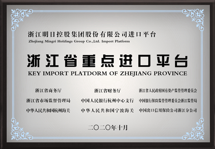 △明日控股獲“浙江省重點進口(供應(yīng)鏈)平臺”稱號
