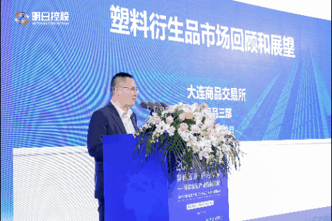 在隨后的主題分享中,大連商品交易所商品三部高級執行經理敬銘軼回顧和展望了塑化衍生品市場的發展;弘則研究董事長、首席宏觀商品分析師王沛以宏觀趨勢與產業研究的視角,深入解讀當前宏觀金融周期和未來市場趨勢判斷;國泰君安期貨化工首席研究員張馳回歸基本面,梳理了內外周期錯配下聚烯烴的市場發展;中石化化工銷售合成材料部經理錢斌分享了上游視角下的產業格局變遷與思考;明日控股集團副董事長邵世萍則從塑化產業鏈中游企業的視角,分享明日產融結合的實踐經驗。