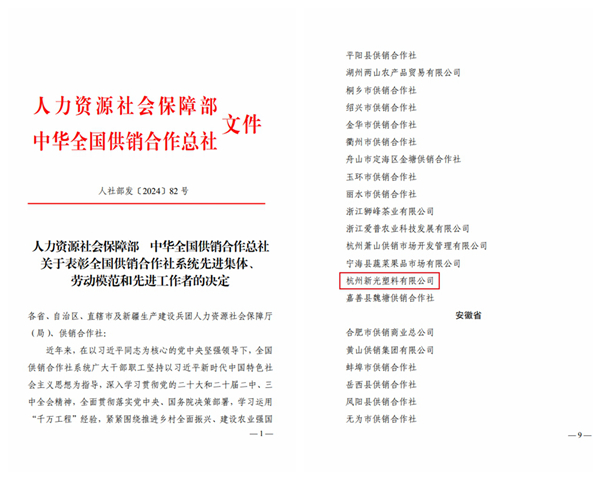 11月28日,中華全國供銷合作總社成立70周年紀念會在北京召開。會議全面總結70年來供銷合作社改革發展成就和經驗,并與人力資源和社會保障部聯合表彰了全國供銷合作社系統先進集體、勞動模范和先進工作者。其中,明日控股下屬工業企業杭州新光塑料有限公司獲評“全國供銷合作社系統先進集體”。